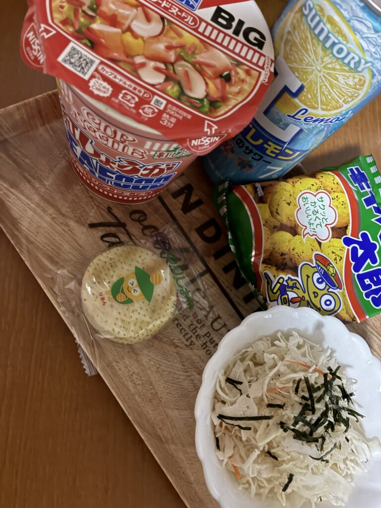 「栄養バランスが…」なんて声が聞こえてきそうですが、たまにはこういう**「自分の好き」だけを詰め込んだ時間**が必要なんです。トレイ一枚に収まる、自分だけの小さな宴。