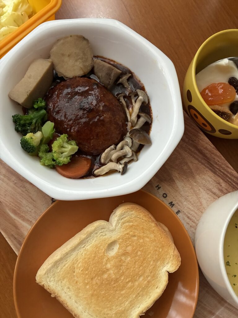 カエデは今日、ちょっと贅沢な気分を味わいたくて、セブンプレミアムの代名詞とも言える「金のハンバーグ」をメインにした昼食を楽しんじゃいました!