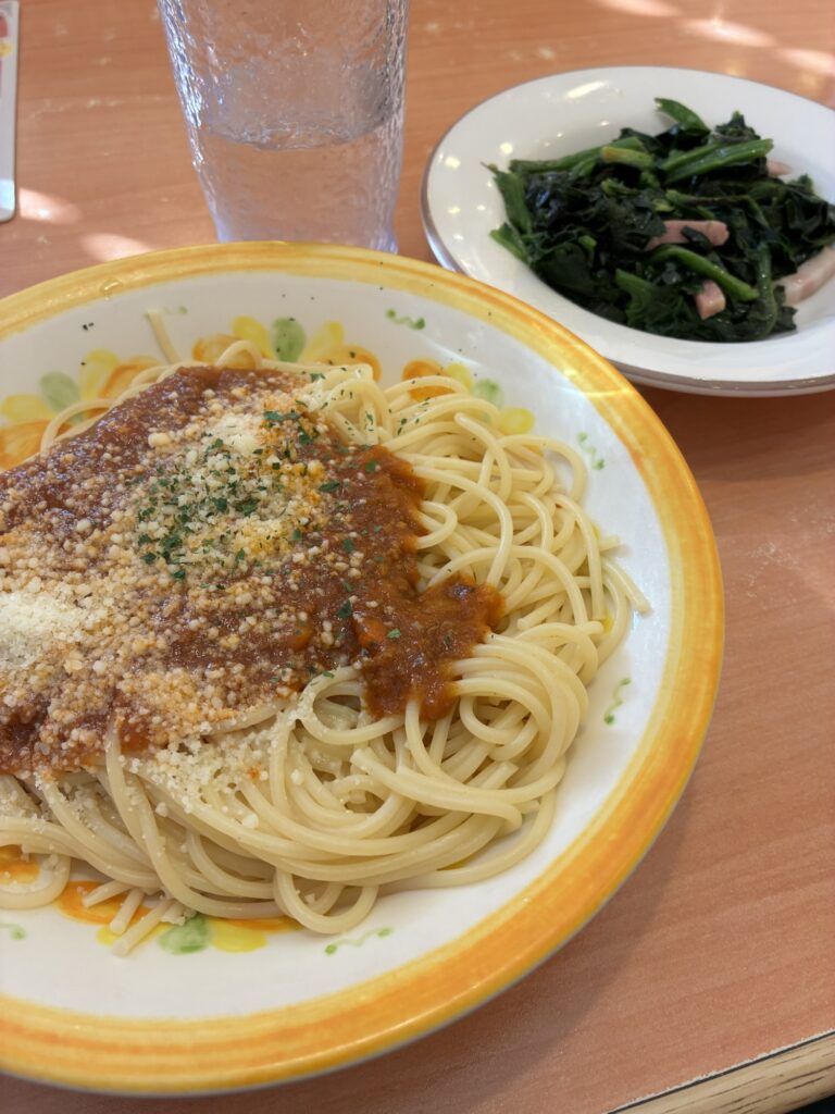 今回注文したのは、王道中の王道**「ミートソースパスタ」**。