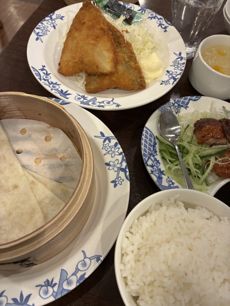 中華料理店でアジフライ?と思うかもしれませんが、これがまた絶品なんです。衣は驚くほどサクサクで、中はふっくら。添えられたマヨネーズを少しつけて食べると、もうご飯が止まりません。