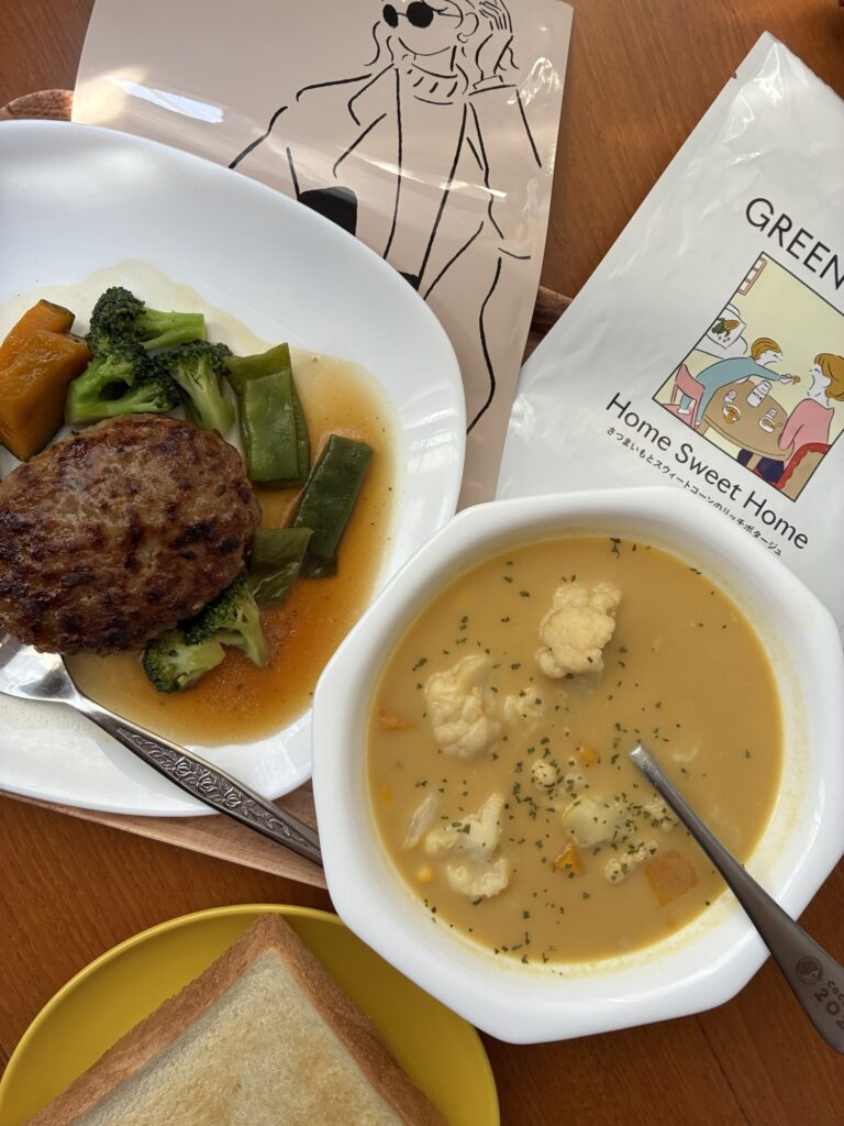 今週のグリーンスプーン!〜直火焼きハンバーグとさつまいもとスウィートコーンのリッチポタージュ〜