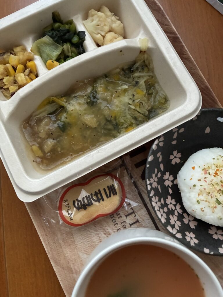 今回は、写真にあるようにご飯やスープ、「さくしお味」のおせんべいと一緒にいただきましたが、メインの満足感が高く、最後まで美味しく飽きずに楽しめました。
